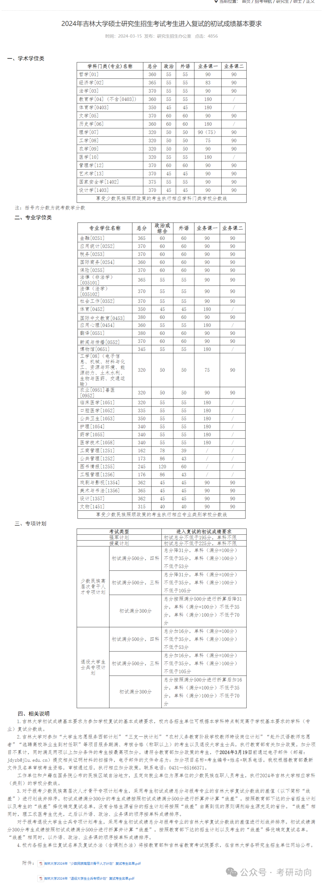 目前已有大连理工大学、中国科学技术大学、北京航空航天大学、北京理工大学、南开大学、重庆大学、同济大学、西北工业大学、四川大学、厦门大学、山东大学、东北大学、北京师范大学、吉林大学、西安交通大学、武汉大学、东南大学、天津大学、浙江大学、中国农业大学、哈尔滨工业大学、上海交通大学、华南理工大学、中山大学、清华大学、北京大学等26所院校公布了2024年考研复试分数线,以下是具体内容,供大家参考~